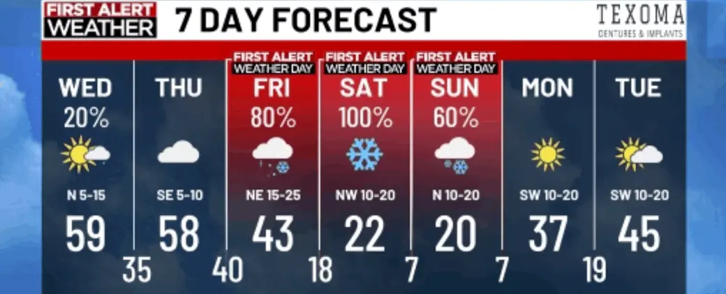 Even if totals change, ice plus wind plus sub-freezing temps is the combination that stresses homes and infrastructure here in Texoma.